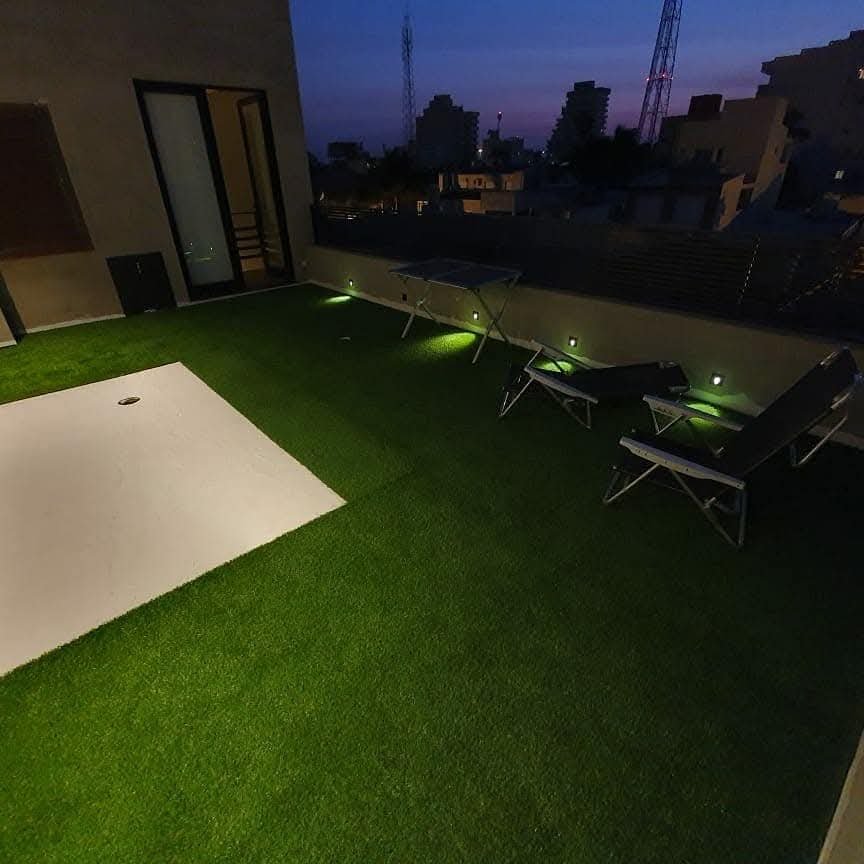 Este tipo de césped no requiere riego ni corte, esto lo convierte en una alternativa ideal para patios pequeños, jardines o clubes deportivos. Además, se caracteriza por su bajo mantenimiento y larga durabilidad.