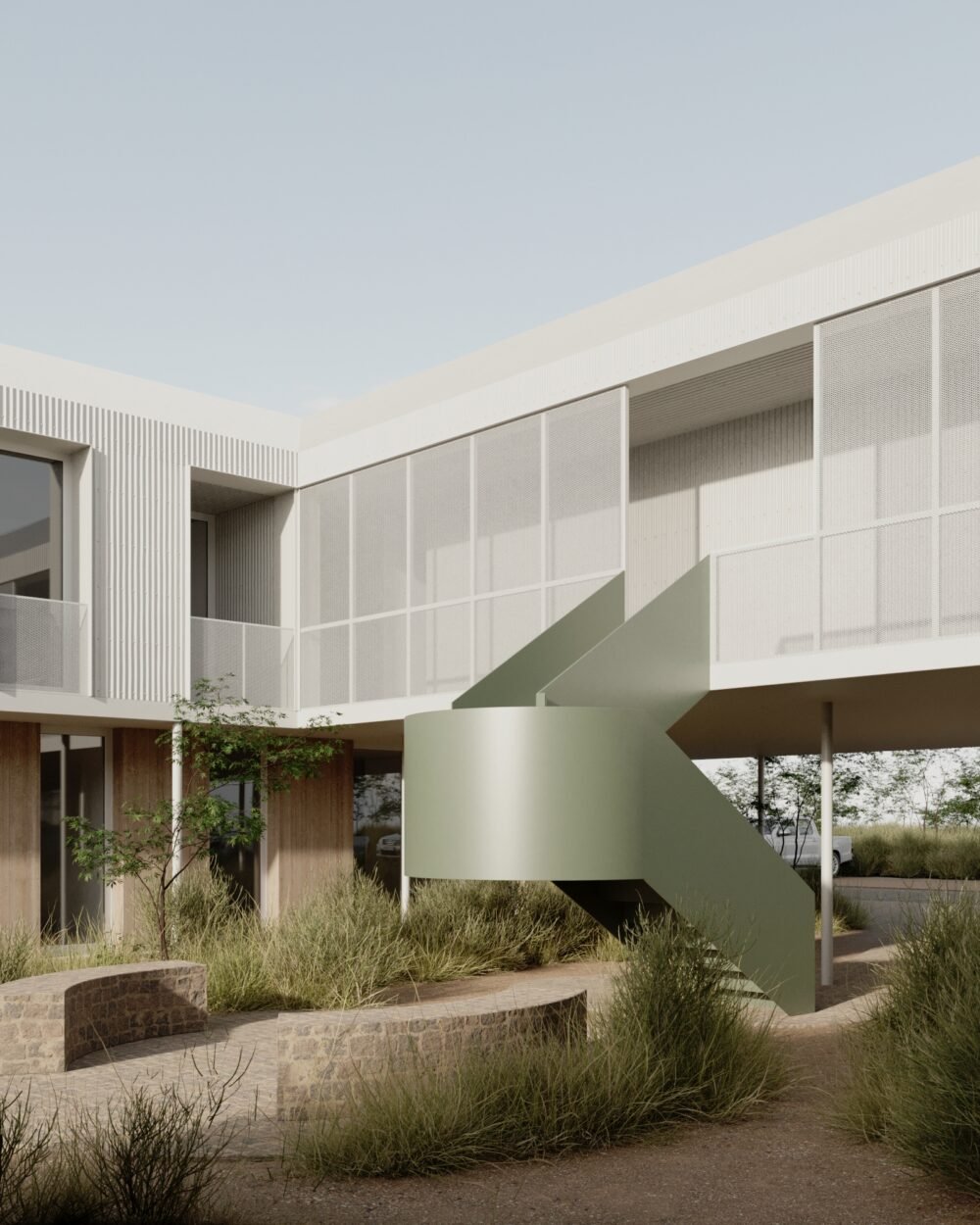 Todas las unidades se entregarán totalmente equipadas y amobladas, con tipologías funcionales de 35 a 57 mts2, pensadas para maximizar confort y eficiencia. El diseño se completa con espacios verdes con vegetación nativa, recorridos contemplativos y un gesto escultórico en sus escaleras metálicas curvas que integran estética y funcionalidad.