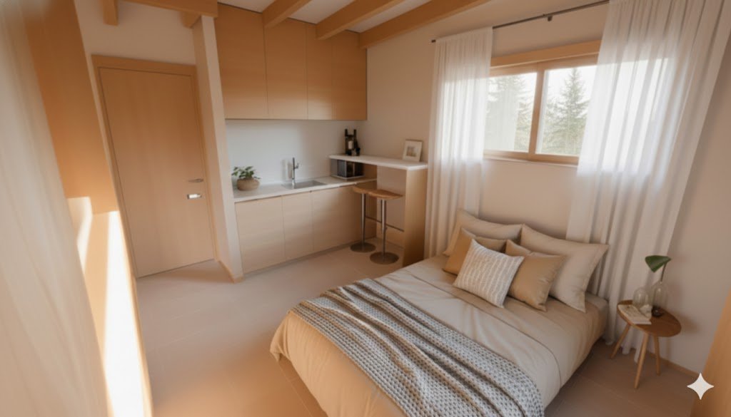 El proyecto de este monoambiente modular utiliza madera reforestada proveniente de la provincia e incorpora tecnología aplicada en Misiones mediante el sistema Wood Frank, lo que lo convierte en una opción ideal tanto para primera vivienda como para emprendimientos turísticos por su diseño moderno, práctico y eficiente.